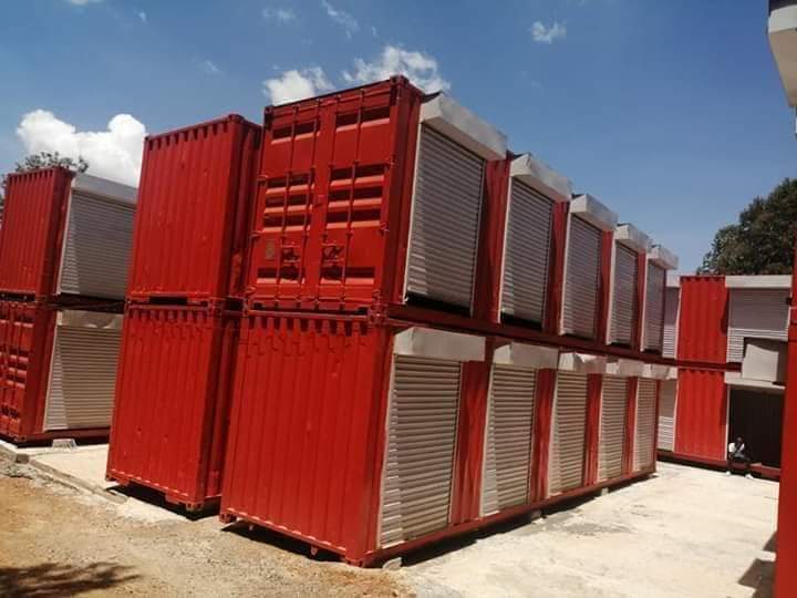 - CUT-OUT DOORS; these are container stalls fitted with container cut-out doors. In simpler terms, the section of the container cut to create shops openings are modified into doors are fitted back with high level of precision